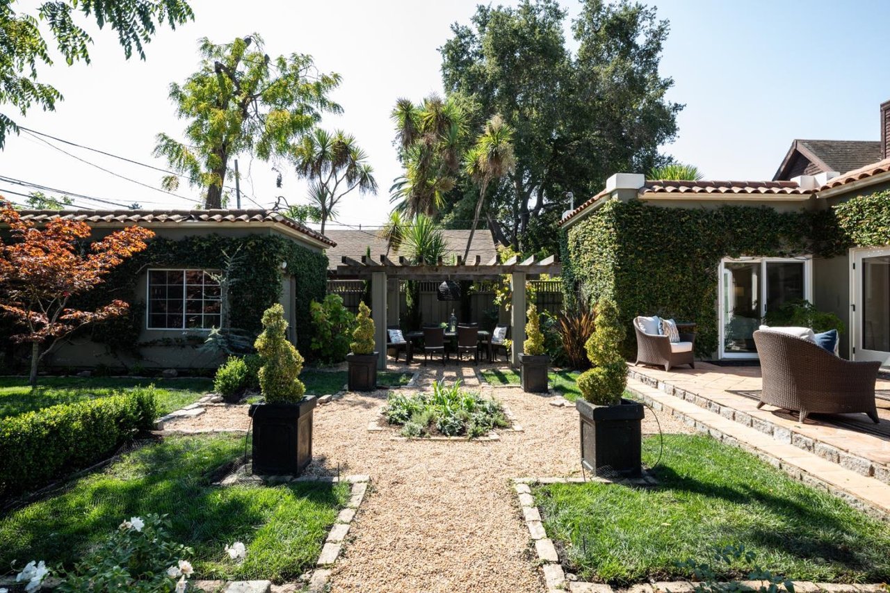 Nestled in the premium part of The Willows, this 4-bedroom, 2-bath Mediterranean-style home blends timeless character with fresh updates. Set on a beautifully manicured 7,000SF lot, that feels much larger, the property offers lush gardens visible from every window, a San Francisco cobblestone patio and driveway, Saltillo-tiled patios for entertaining, and a detached rear garage with alley access that can serve as an office or accessory dwelling unit (ADU). Inside, freshly refinished hardwood floors, new paint, and a split floor plan create bright, flexible living spaces. Around the corner from Haven Wine Bar, Café Zoë, a neighborhood grocery with authentic burritos in the back, and other local favorites, the home is walkable to both downtown Palo Alto and Menlo Park. Bike to Stanford University, Stanford Hospital, Burgess Park and Recreation Area, or the library. Conveniently closebut not too closeto major commuting corridors. With its abundant outdoor spaces, fairytale landscaping, and attractive architecture, this home perfectly balances style, comfort, and an enviable Menlo Park lifestyle.